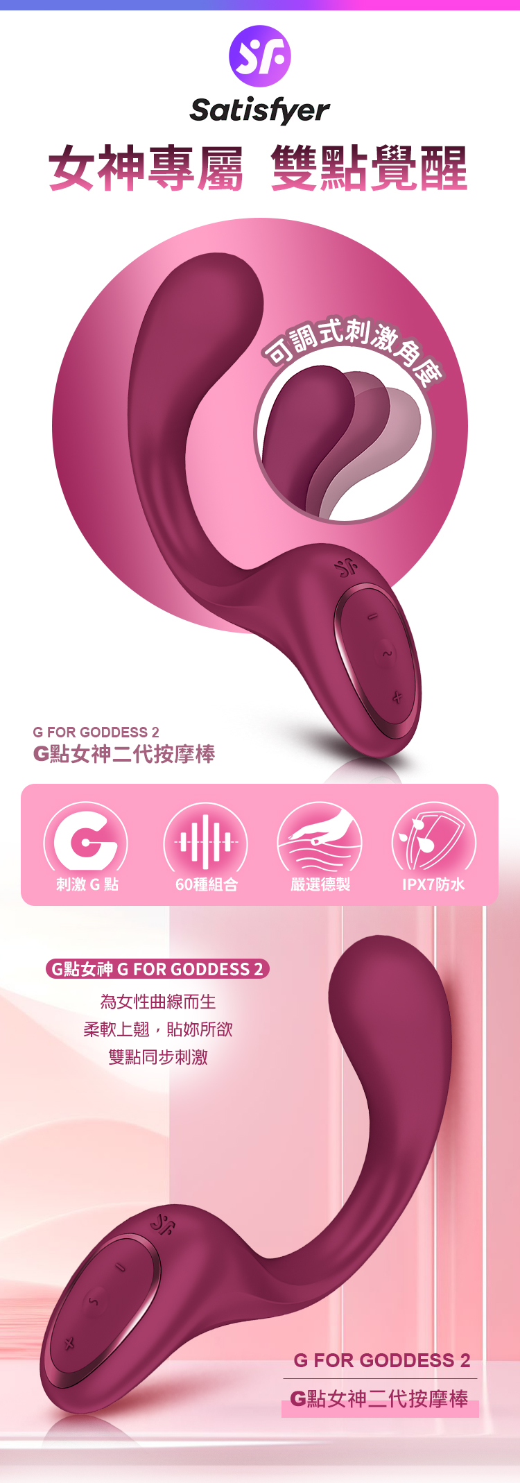品名:Satisfyer|G for Goddess 2|G點女神二代 GC點按摩棒 深紅